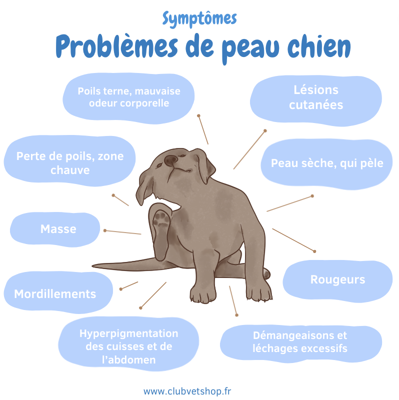 Pour vous aider à comprendre les types de problèmes de peau les plus fréquents, nous vous proposons notre article 'Maladie de peau du chien avec photos' pour les problèmes de peau des chiens les plus courants.