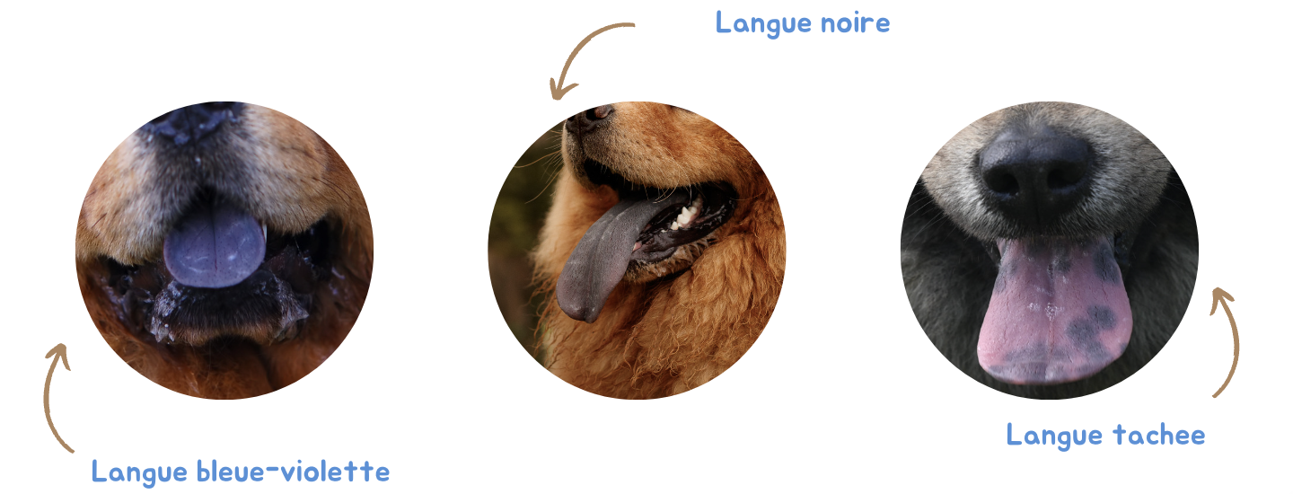 Certains chiens, comme le Shar-Pei, le Chow Chow, le Chien thaïlandais à crête dorsale ou l'Eurasier, ont une langue naturellement pigmentée de noir, de violet ou de bleu foncé.
