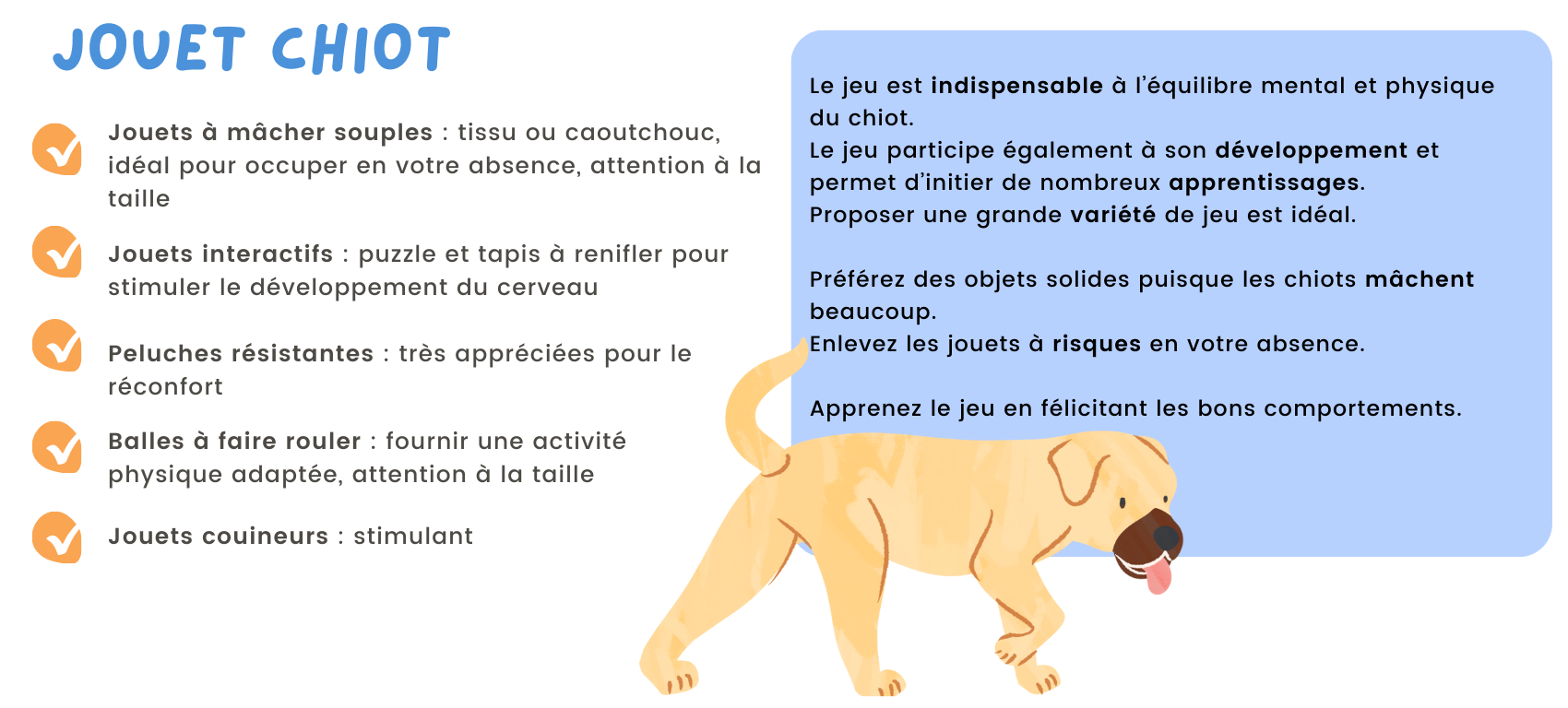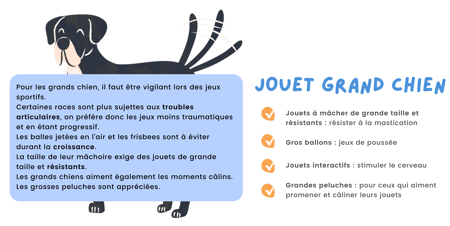 Considérer ces facteurs permet de proposer des jouets adaptés, sans dangers et qui plairont à votre chien.
