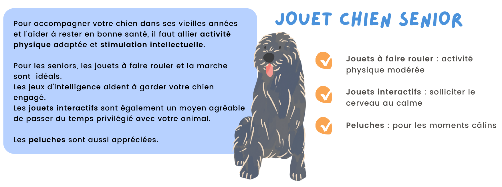 Ils sont également stimulants et peuvent favoriser le jeu chez les chiens sédentaires ou âgés.