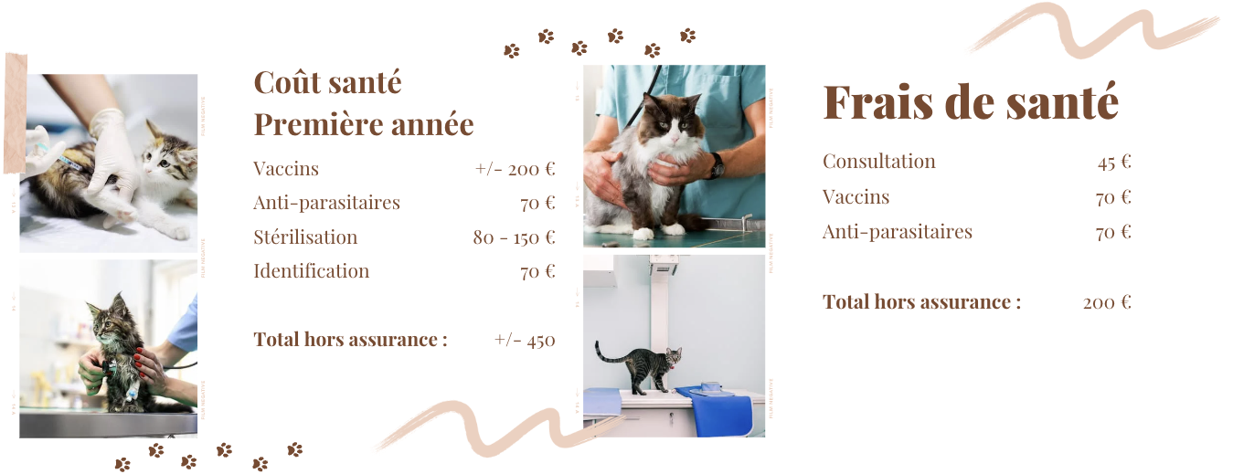 La première année représente un coût supérieur puisque si vous n'avez pas déjà de chat, tous les accessoires sont à acheter et certains frais vétérinaires sont à prévoir.