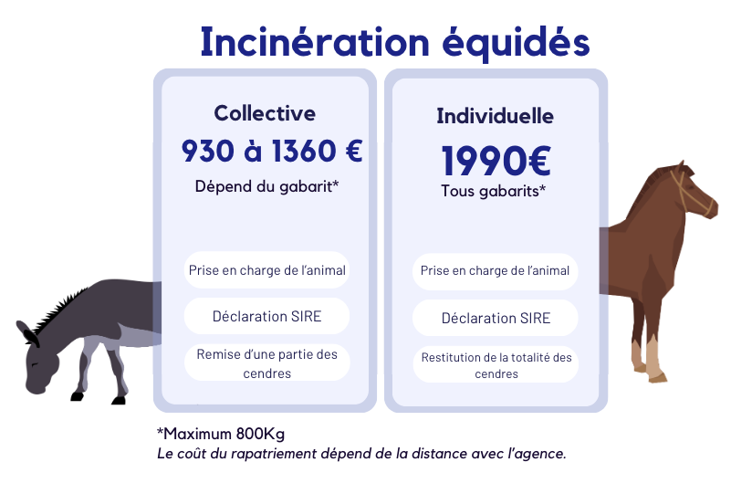 Il est également possible de faire incinérer les équidés mais à ce jour il n'existe qu'une agence de crémation pour chevaux, poneys et ânes ce qui rend cette option moins accessible pour les propriétaires.