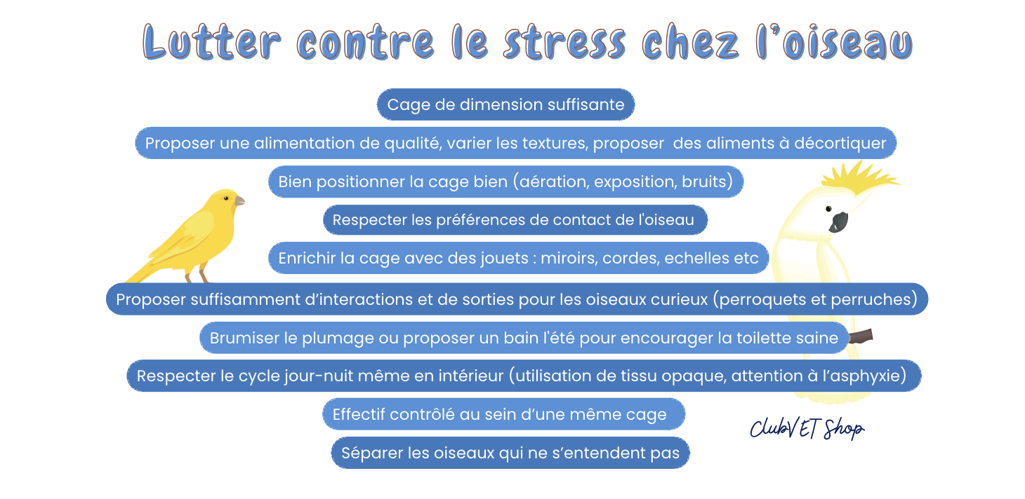 • changement d'habitudes : nouvel arrivant , vacances, déménagement déplacement de la cage, nouvel animal