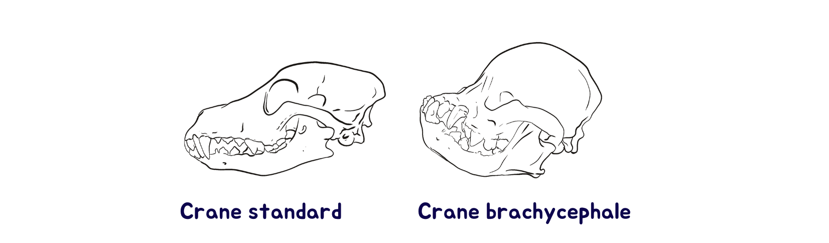 Le syndrôme brachycéphale définie une morphologie de crânes plus larges que longs et une face aplatie.