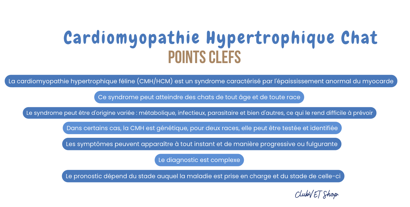 Tous les chats porteurs de la CMH ne montrent pas de symptômes, ils peuvent arriver de manière fulgurante ou progressive, dans tous les cas, si vous observez ces symptômes consultez rapidement votre vétérinaire.