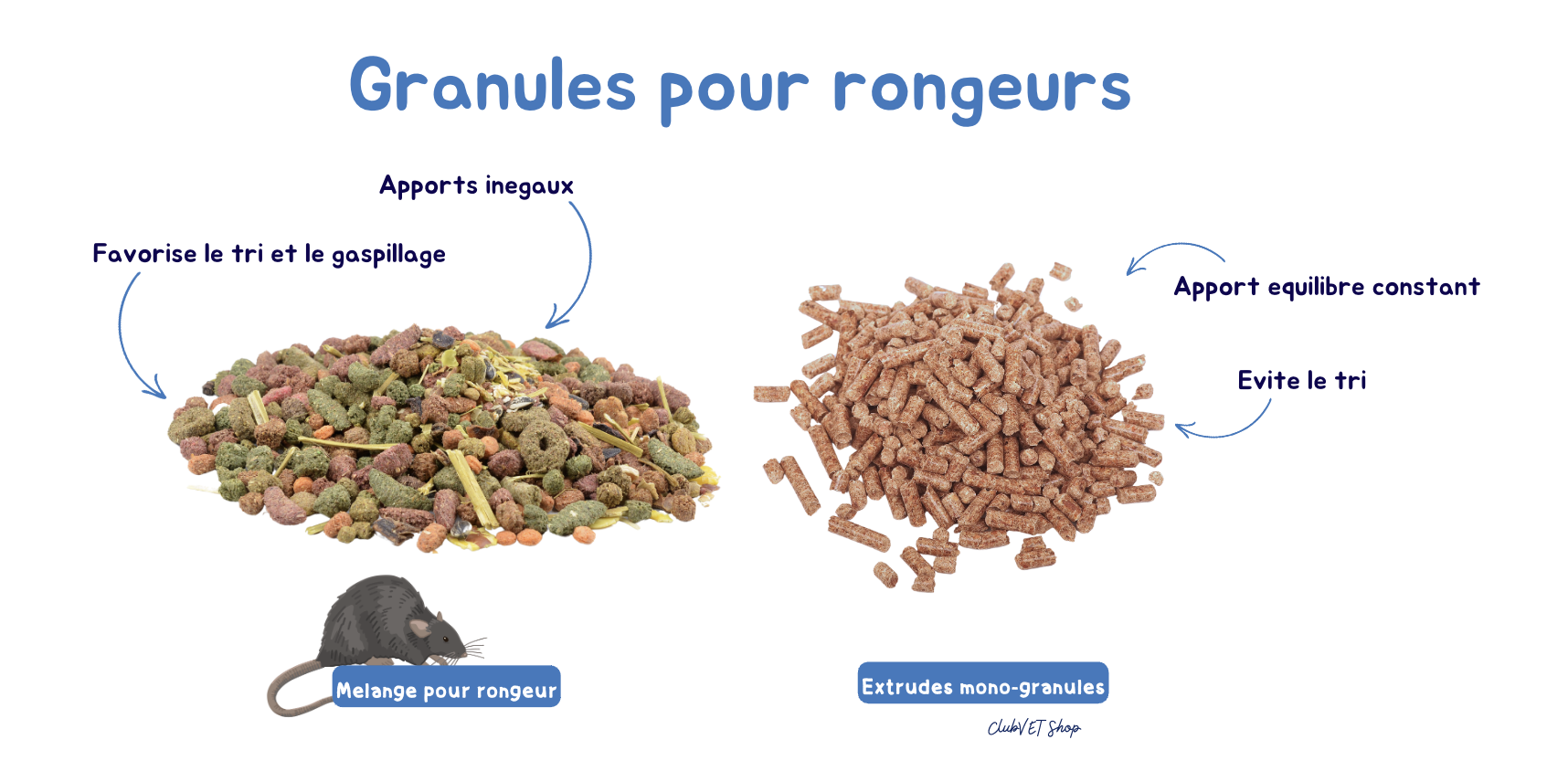 Préférez les extrudés mono-granulés (les gammes contenant une seule sorte de granulés) pour éviter le tri.