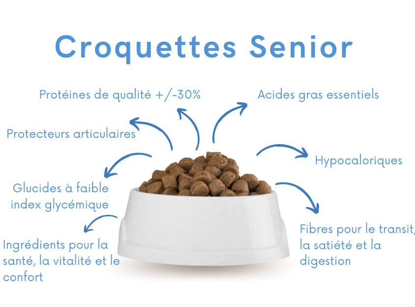 Il est aussi recommandé de ne pas attendre d'observer un réel vieillissement et une perte de vitalité avant la transition.En effet, les croquettes pour senior, aident à protéger l'organisme mais ne réparent pas un souci déjà présent.